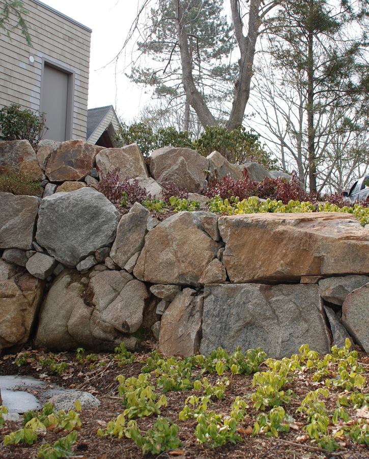 Stone Retaining Wall and New Shrubbery